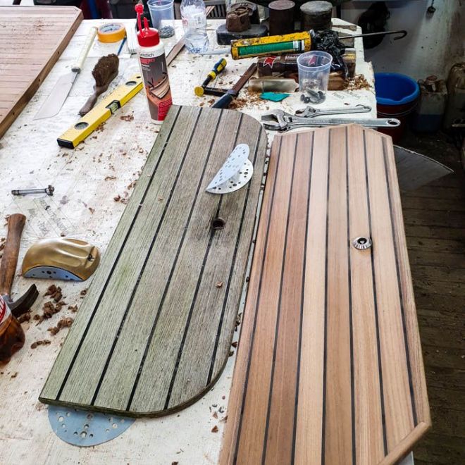 Selbst stark verwitterte Oberflächen können wir Ihnen wie neu aufpolieren. Oft sind die Erfolge so gut, dass die Oberflächen mehr glänzen als damals bei der Auslieferung wo das Boot neu war.